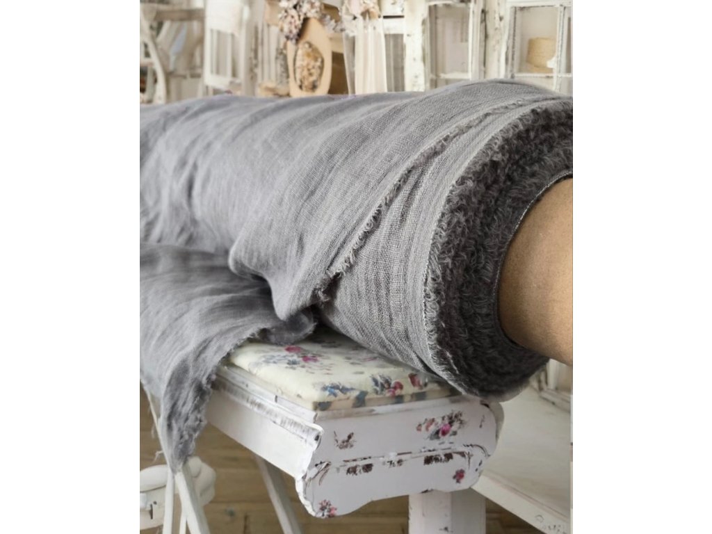 100% měkčený len/přírodní - vintage šedý odstín, 93g-m2, len s certifikátem OEKO-TEX