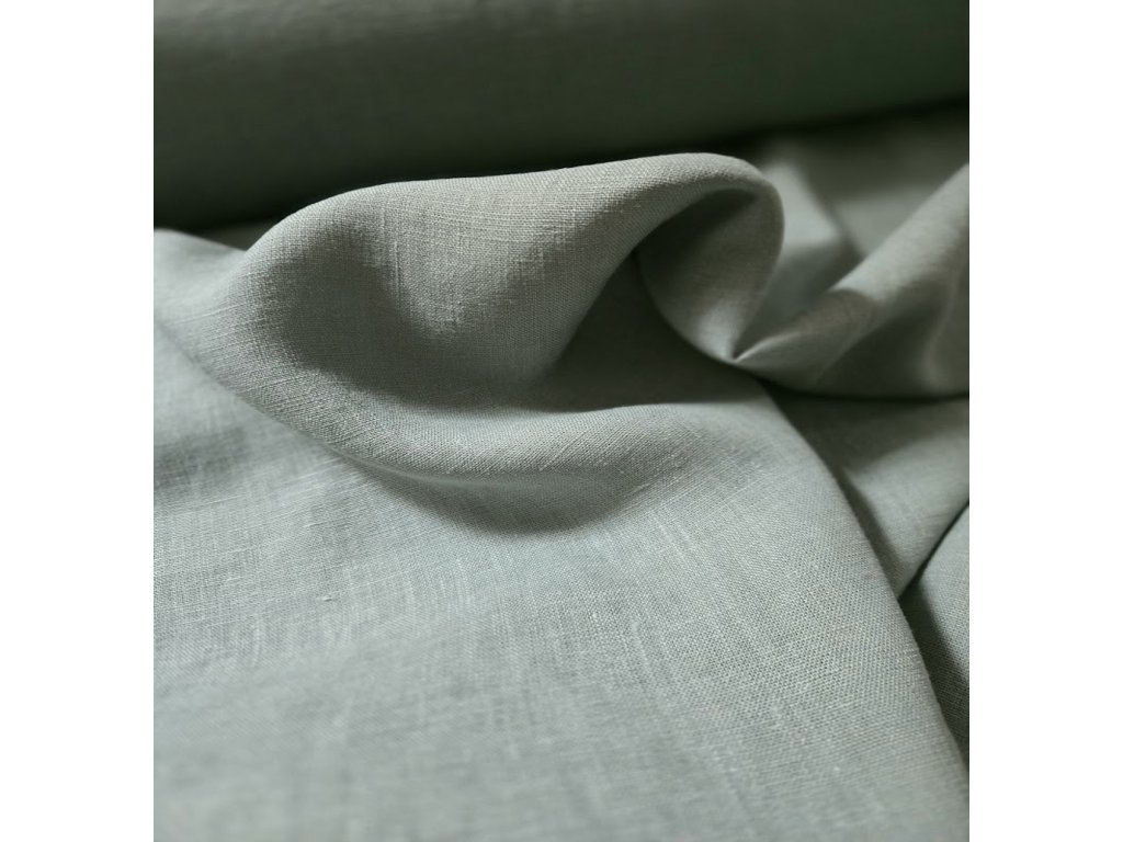 100% měkčený len/vintage světle olivově zelenkavá, len s certifikátem OEKO-TEX