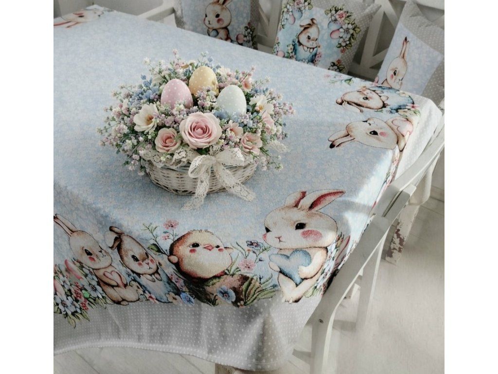 Gobelínový ubrus - 145x145cm se vzorem velikonočních zajíčků a kuřátek
