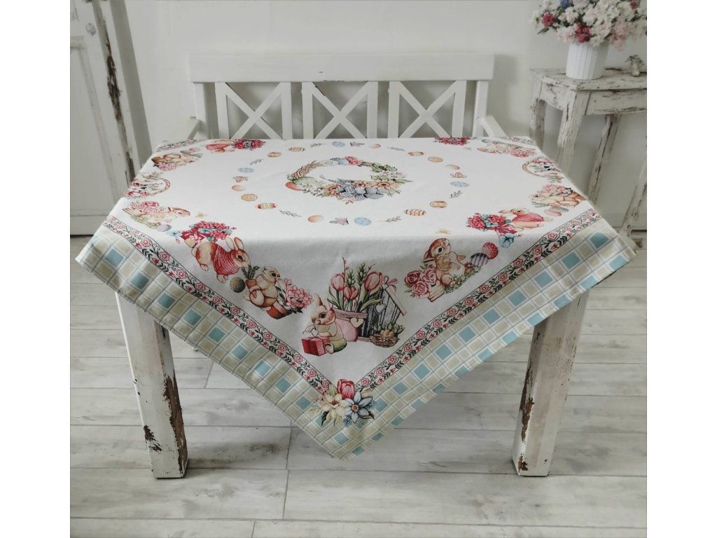 Gobelínový ubrus - 145x145cm se vzorem velikonočních zajíčků