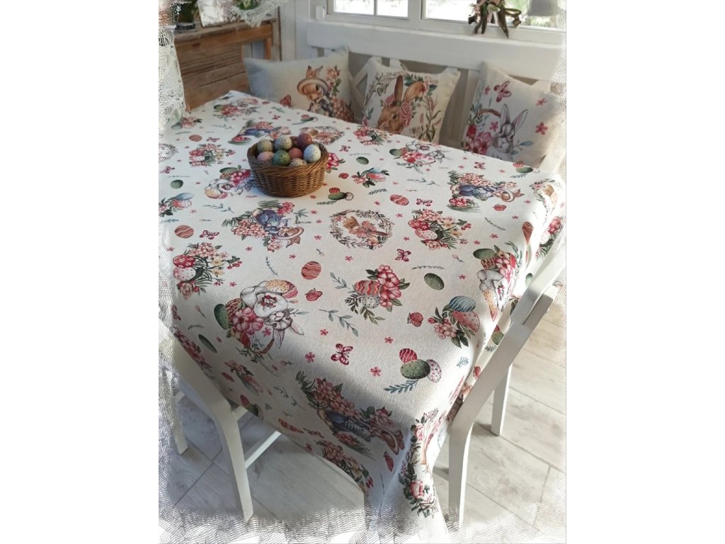 Gobelínový ubrus - 150x190cm se vzorem velikonočních zajíčků