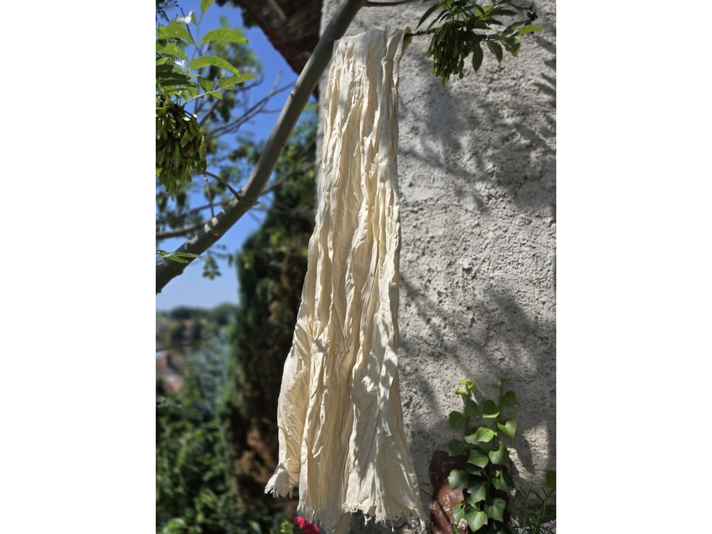 Mačkaný vzhled docílíte, když po praní šátek stočíte a necháte volně proschnout.