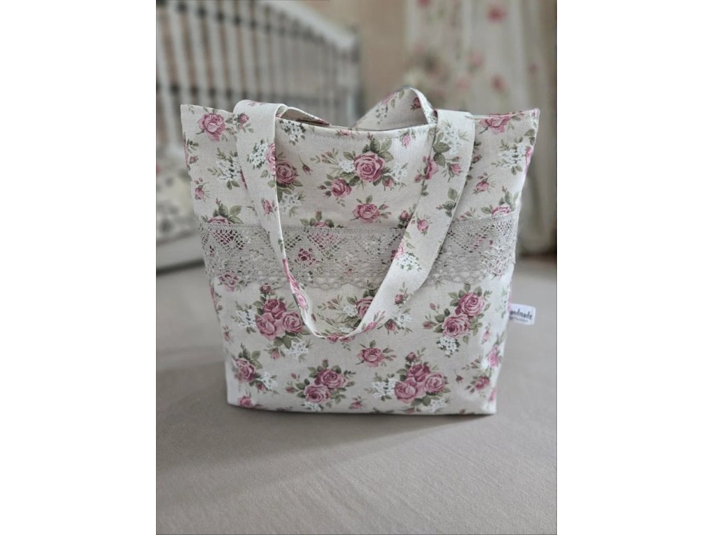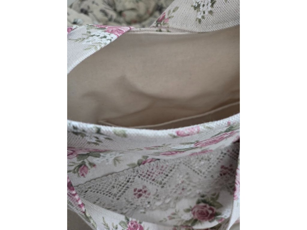 Romantická látková taška inspirovaná stylem shabby chic vnese do každého dne nádech venkovské elegance a jemné nostalgie. Květinový motiv v tlumených tónech v kombinaci s přírodní lněnou krajkou působí něžně, žensky a nadčasově.