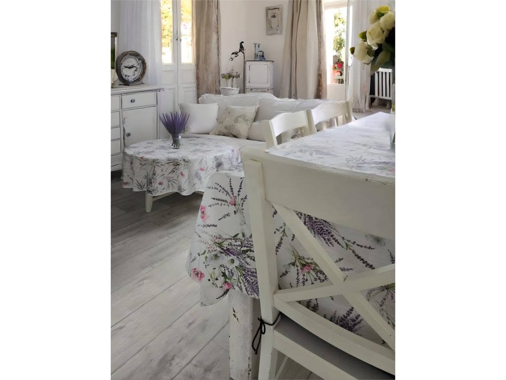 Romantický ubrus s levandulí ve stylu francouzského venkova