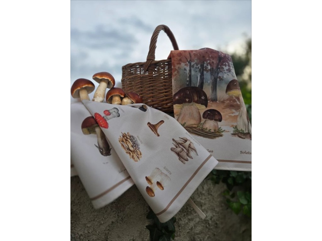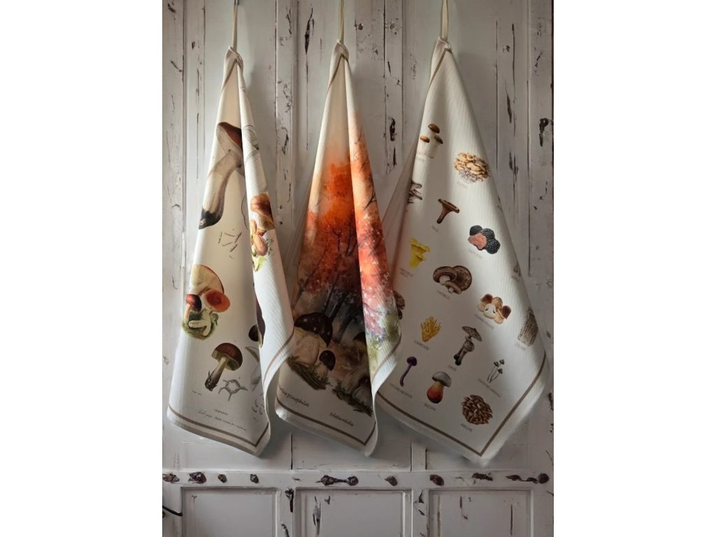 Sada 3 kuchyňských utěrek ideální pro milovníky lesa, houbaření a přírody – krásný dárek i ozdoba venkovské nebo rustikální kuchyně.