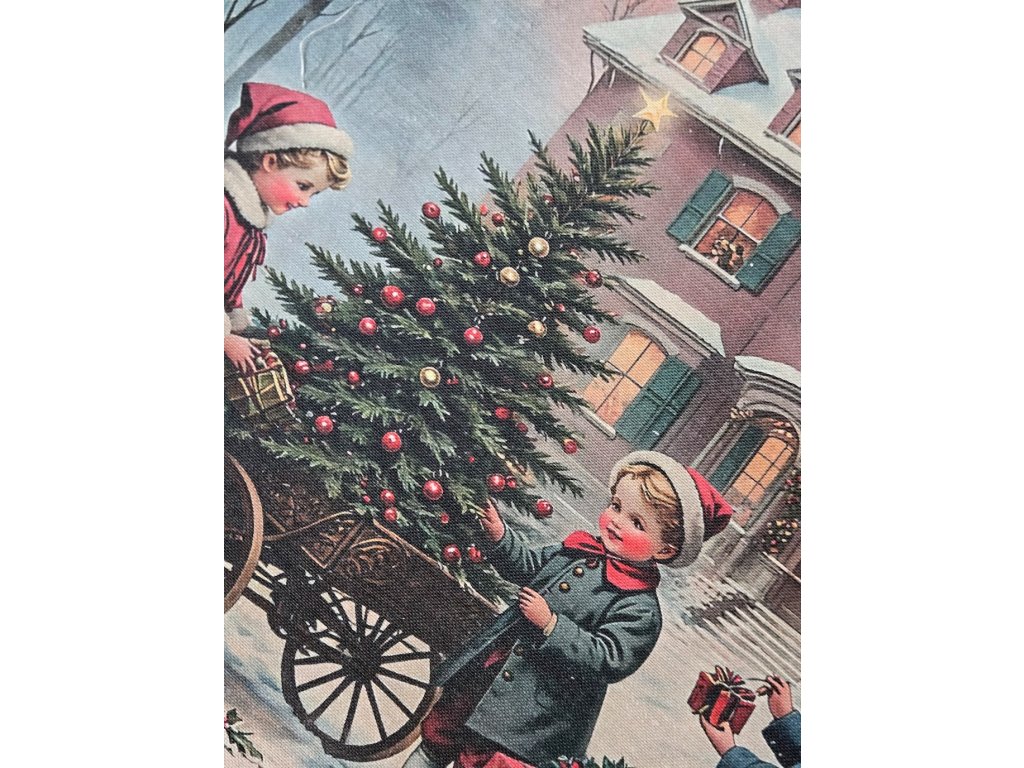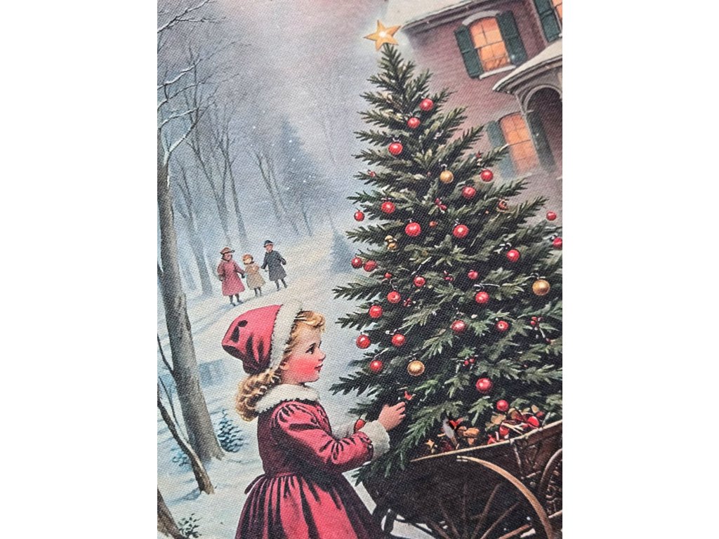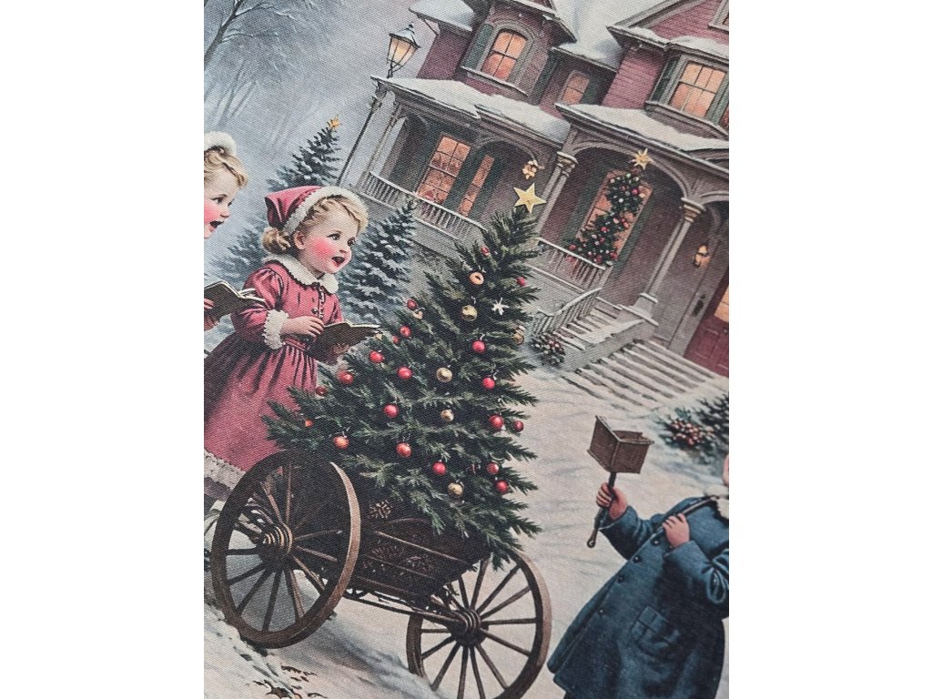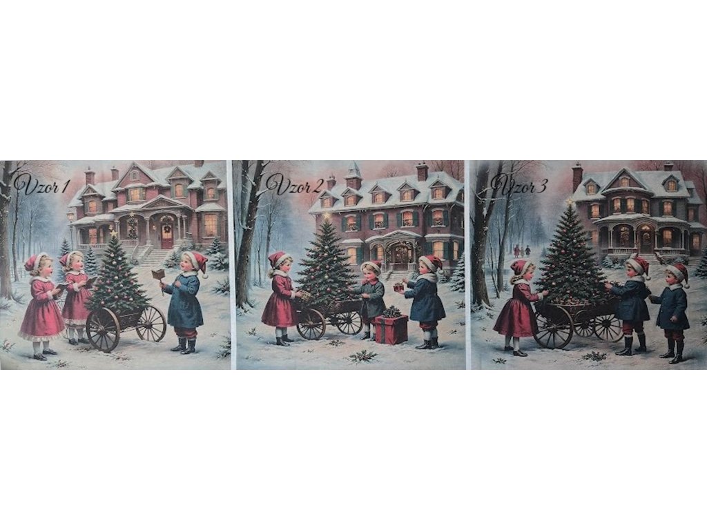 Vánoční panel – vintage děti (autorský motiv) Originální látkový panel s nostalgickou viktoriánskou vánoční tématikou z mé autorské dílny.